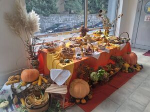 Zahvaljujemo mamama i bakama koje su pripremile različite oblike kruha i peciva te je tako izložbeni stol u predvorju dvorane osvanuo lijepo uređen.